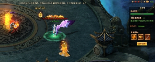 BOSS要求战力较高,击杀可获道印升品材料和多件装备,并且为全服玩家发放50个福利礼包。