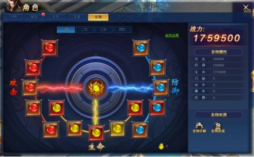 2. 每个等阶可以配带15个圣物,攻击/防御/生命圣物分别可配带5个(一阶可以带15个,二阶也可以带15个,用切页区分)