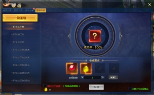 3. 消耗一定灿烂圣晶可保证合成的普通圣物品质至少为稀有品质以上