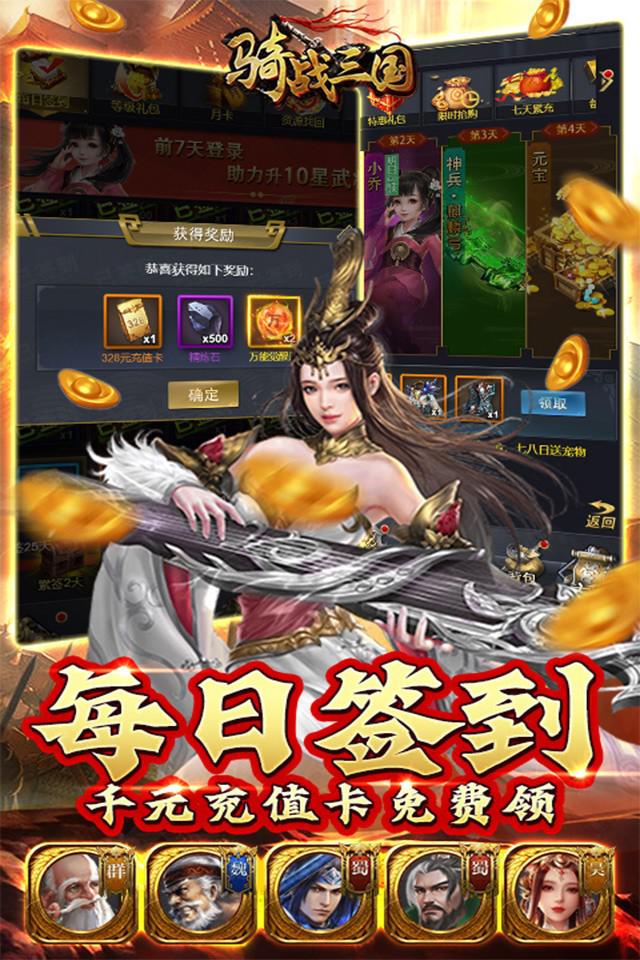 《骑战三国(送GM无限充值)》上线即送GM特权,168888元宝,千元充值卡,免费开启GM商城。游戏高度还原三国剧情,数十位武将,十八般兵器,骑上作战,谁与争锋。武侯八阵,天地风云,龙虎鸟蛇,应势而变。武将合体百技尽出,且看刘关张“桃园结义”,董吕貂“双星捧月”。神兵降世,青龙刀享誉四海,魔 画戟威震八方。董贼狼子野心,人神共愤,讨伐诸侯,势在必行。草船借箭,与孔明共勉;破铜雀塔,剑指曹操;过五关斩六将,奔赴四方,最终成就升官晋爵之路。