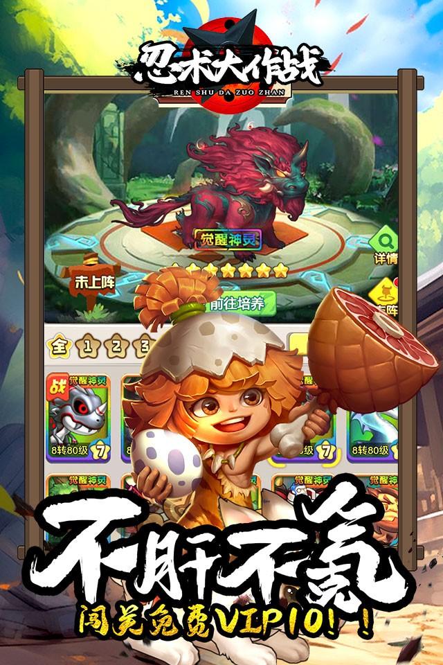 《忍术大作战》是一款Q版画风石器题材的放置游戏。游戏中玩家将扮演守护村庄英勇的少男少女,通过获取装备、收集宠物等方式壮大自身,不停的击败来犯怪物。 游戏融合了收集宠物等经典元素,用全新的放置方式解放你的时间,养肝护肝的同时让你重温往日感动!升级版的画面,动感的人物造型,2023全新起航,让你再次爱上这片大陆!