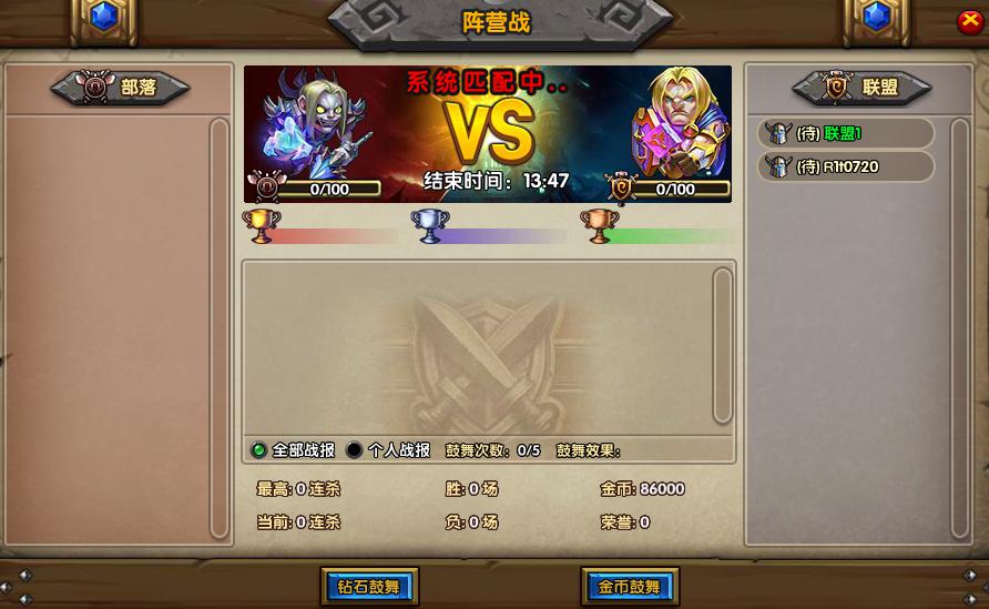 阵营战在每周定时举行。您可以通过主界面的按钮进入阵营战界面。进入界面后系统会为您自动匹配对手。击败对手即可累积奖励,连胜的次数越高奖励也就越丰厚。阵营战结束后,您将收到邮件结算发放您本次阵营战的战利品。在阵营战中,您可以使用金币或者钻石进行鼓舞,可以大幅提高战斗能力。