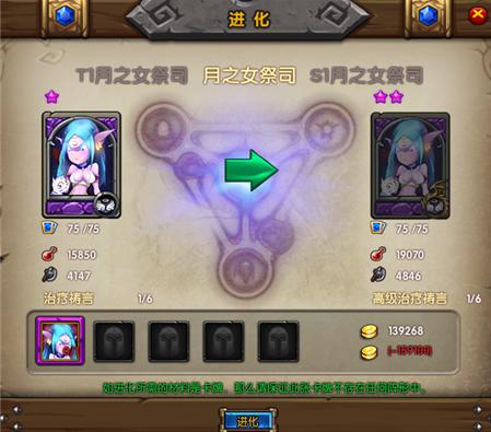 卡牌升级到等级上限以后就要通过进化来提高等级上限和品质了。