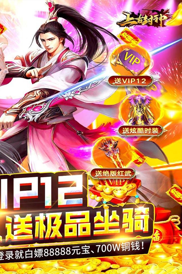 《上古封神》是一款全新西游题材的神话大型3DARPG手游!上线送“皮肤”送“红武”,再送海量元宝加满级VIP,超高福利, 助你对抗天庭!这是一款颠覆想象的东方神话跃然眼前。独创人界、仙界、神界三界玩法。激烈角逐的竞技场,难度超高的副本挑战, 神器时装应有尽有、满足玩家180种个性需求。三界闯荡,伙伴坐骑齐相伴。全程真人语音加名著剧情演绎。