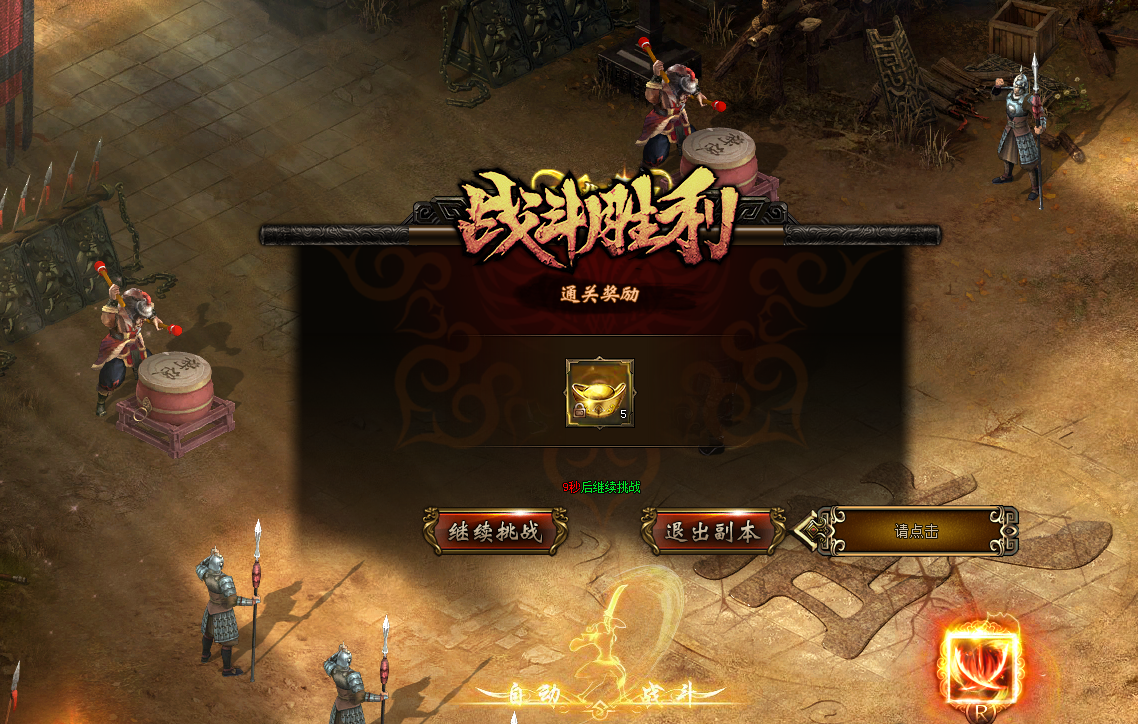 玩家通过击败每关的守关BOSS,获取绑定元宝与称号。