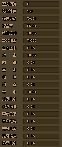 经验加成 | 基础是100%,仅限杀怪获取的经验 实际经验=怪物基础经验*(1+杀怪经验加成) |