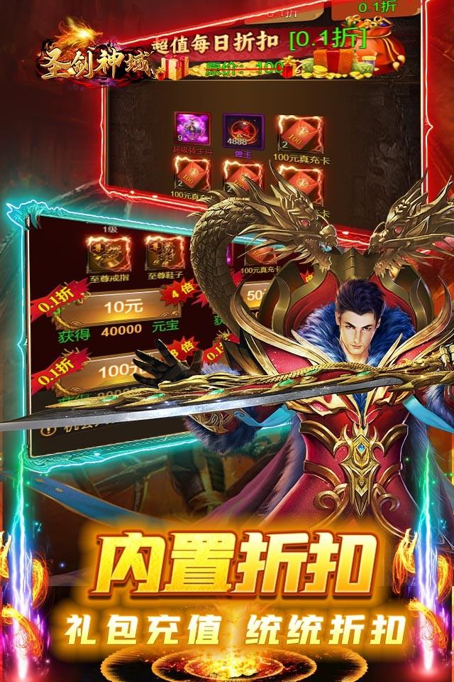 圣剑神域(狂欢内购折扣)全新的内置0.1折扣!充值礼包活动0.1折起!极致的充值狂欢,超痛快的游戏玩法,您确定不来试试吗?欢乐60秒,翻滚吧,红包!限时时间点红包,手速越快抢的越多!幸运红包等你来抢!巅峰大乱斗,击杀玩家攒积分,丰厚奖励等你来领,无杀戮,不传奇!开服折扣礼包和每日折扣礼包,内含大额真充卡及超值道具,助力散人潇洒成长!行走的钞能力,身份的象征,开启霸服新模式!传奇卡牌,战灵出征,寸草不生,卡牌大作战,稀有卡牌大放送,更有限时折扣商城等你来抢!,更有限时折扣商城,内置大量超值大礼包,名额有限,等你来抢!!装备全靠爆,为散人玩家提供超爽的游戏体验。惊喜红包,全民在线瓜分千亿红包,更有