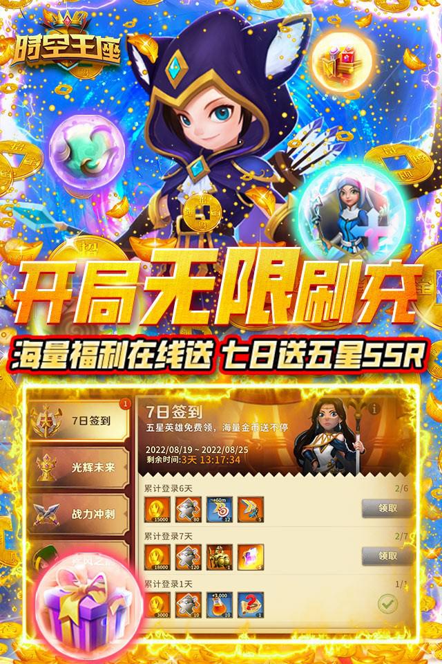 超高人气千人同屏策略手游《时空王座》重磅而来!多重首发福利齐发,助力兄弟们一统天下。超高爆率,无上限狂刷充值卡。闯关赢红包,白嫖玩到爽。君王特权免费拿下,振臂一呼千军万马来支援。开服首日登录送6元现金券,直接拿下首充SSR英雄,攻城略地,一马当先。100%超高还原度,回味经典中土战争,你还在等什么。