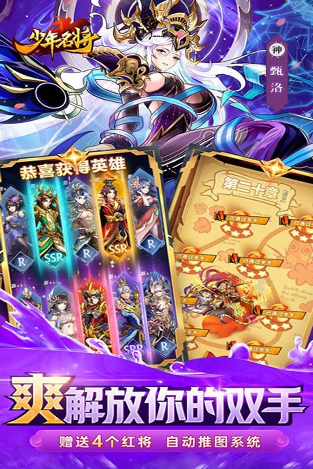 王者BT三国卡牌手游《少年名将》新版来袭,再掀全民跨服战风暴。上线送满V,全新修仙系统:带你勇闯三国之巅,新增神装系统:角逐最强王者,自动推图系统:招募华丽三国豪杰,搭配羁绊情缘释放合体神技。 无限648、红将、金将免费送,更有赤壁之战、军团抢矿、群雄争霸等多种PVP与PVE玩法,让你尽情领略到这三国的征伐与激斗的魅力。