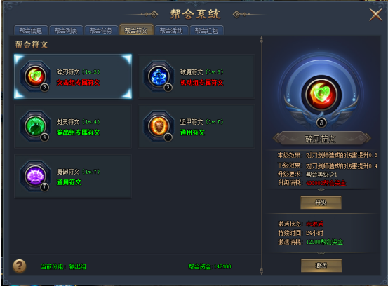 b) 通用符文,由帮主开启每一位成员都能获得该BUFF