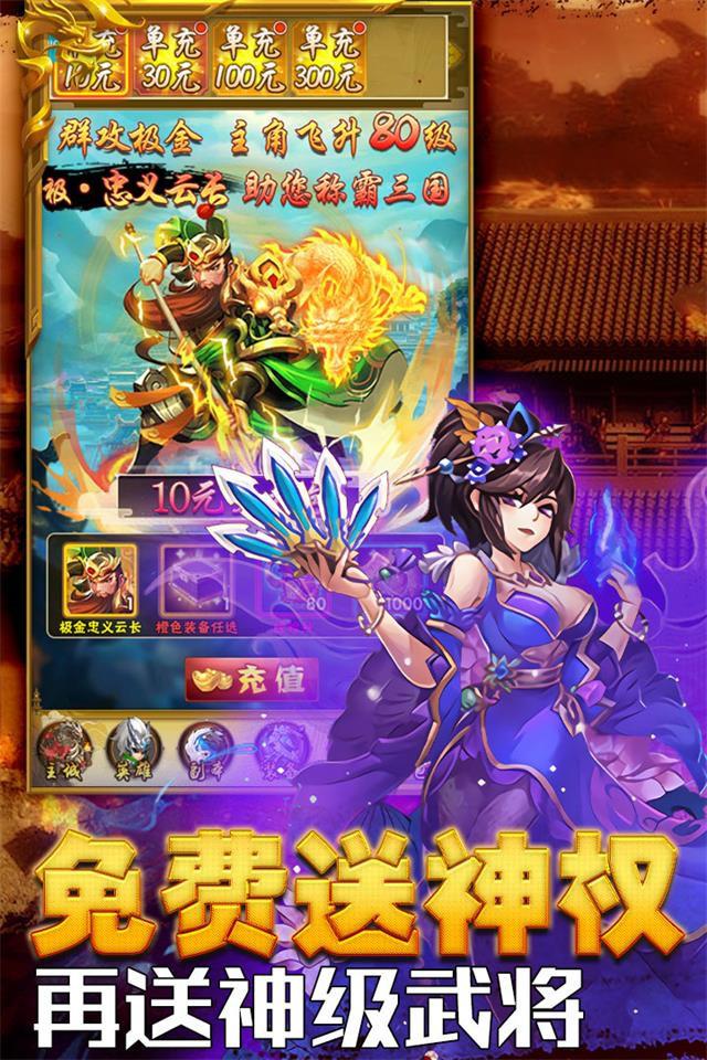 神骑世界(送GM神权)是款游戏以三国为游戏背景。 玩家出生在三国时期的疆场上,为了保卫国家安定,与各路势力展开激战,创建自己的阵营,带着伙伴砥砺前行,上线送至尊GM、海量代币,登录就送千元真充卡,无限资源福利多,激活每日可无限领取资源,每日完成活跃度,豪礼0氪拿,0氪也能玩到爽。还等什么,快来开启旅途,驰骋疆场。