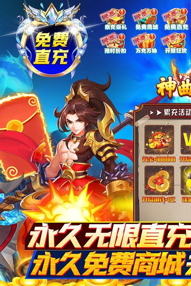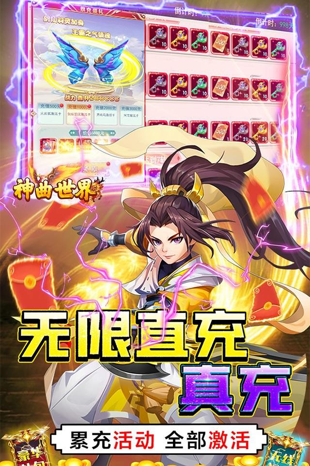 神曲世界(GM无限直充)是一款唯美玄幻Q版仙侠手游,3D渲染华丽特效极致体验,全地图自由飞行,千人同屏,更有拉风坐骑、炫酷羽翼,伙伴萌宠跟随等百变玩法。 永久免费直充:全自动存入钱包,野外挂机,活动均产出直充币,轻松填满直充钱包,随时存随时取,无上限! 永久免费商城:无门槛开启兑换,开局送GM币*9999,登录活动,在线福利,全民BOSS,运营活动均可获得无限GM币,全商城永久免费无限兑换!