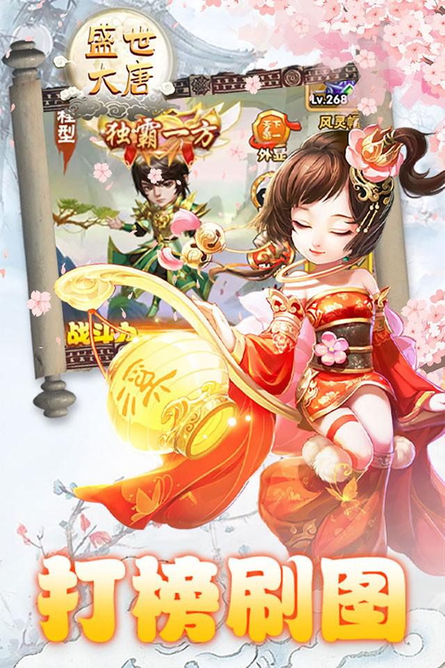 《盛世大唐》是一款西游神话架空题材的回合制游戏。包含浓郁的远古神话气息,精美的画面表现,便捷轻松的挂机玩法,酷炫的坐骑与翅膀系统,还有唯美的外观系统。其他还拥有仙侣、神兵、法宝、宠物等各种轻松又强大的功能系统,让你每天都有不同的极致体验!
