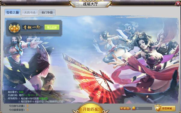 l 参与苍梧之巅与其它玩家进行1v1战斗,可以获得积分,提升段位,每天会根据玩家的段位会发放段位奖励;