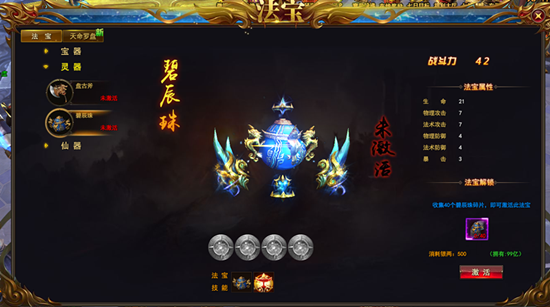 同时激活多个法宝时,可同时将激活的多个法宝属性永久加持在人物属性上。
