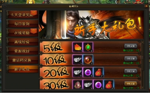 在游戏中为玩家精心准备了辅助玩家升级的新手大礼包,等级到达了便可免费领取。