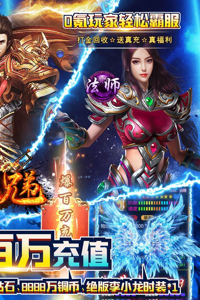 紫霞《屠龙兄弟》是一款正版授权全新三职业传奇大作! 上线赠送满级vip20、元宝*88888、钻石*18888、铜币*8888万、李小龙服饰*1、探宝钥匙*20,主线送充值、登录送充值、升级再送充值,BOSS无限爆百万真充,刀暴击刀刀光柱,0氪也霸服! 游戏回归传统1.76的打法,战、法、道经典三大职业,以装备和BOSS为核心,各系BOSS敞开打、神装必爆又回收,气势磅礴的沙巴克攻城带你回到充满挑战的奇幻传奇世界。 这里有经典版本的原汁原味,也有