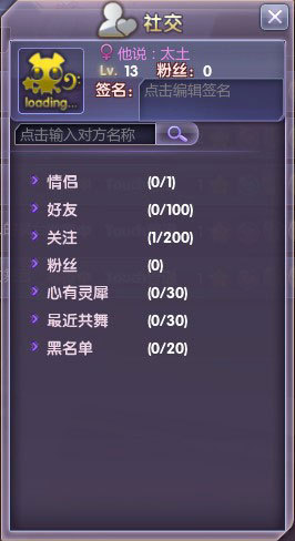 关注:只是玩家当方面关注过对方,而对方并未关注过该玩家的,将显示在关注列表中。