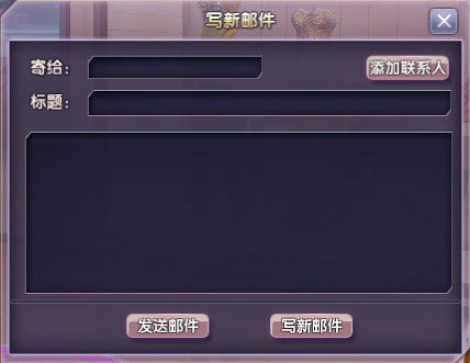 发送邮件时,可填写收件人,标题和内容,填写完成后,点击发送,即可发送到指定玩家的邮箱中。收件人处可以直接输入对方角色名,也可点击"添加联系人"按钮,从好友列表中,进行选取。