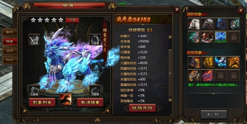 通过消耗坐骑丹来升级铁骑并且提升铁骑属性,升阶突破更可获得新的铁骑和强大属性