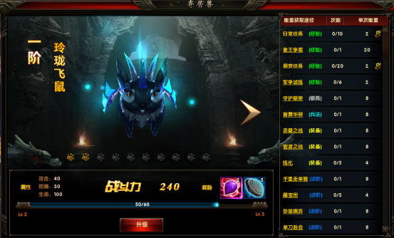 1、寄居兽成长通过完成日常任务及活动获得能量值,能量值充满进度条后即可升级,寄居兽每提高10个星级,自动进阶。