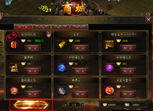 商城商品进行了简单的分类,玩家可以点击“热卖”、“经验”、“强化”、“其他”页签快速查找。
