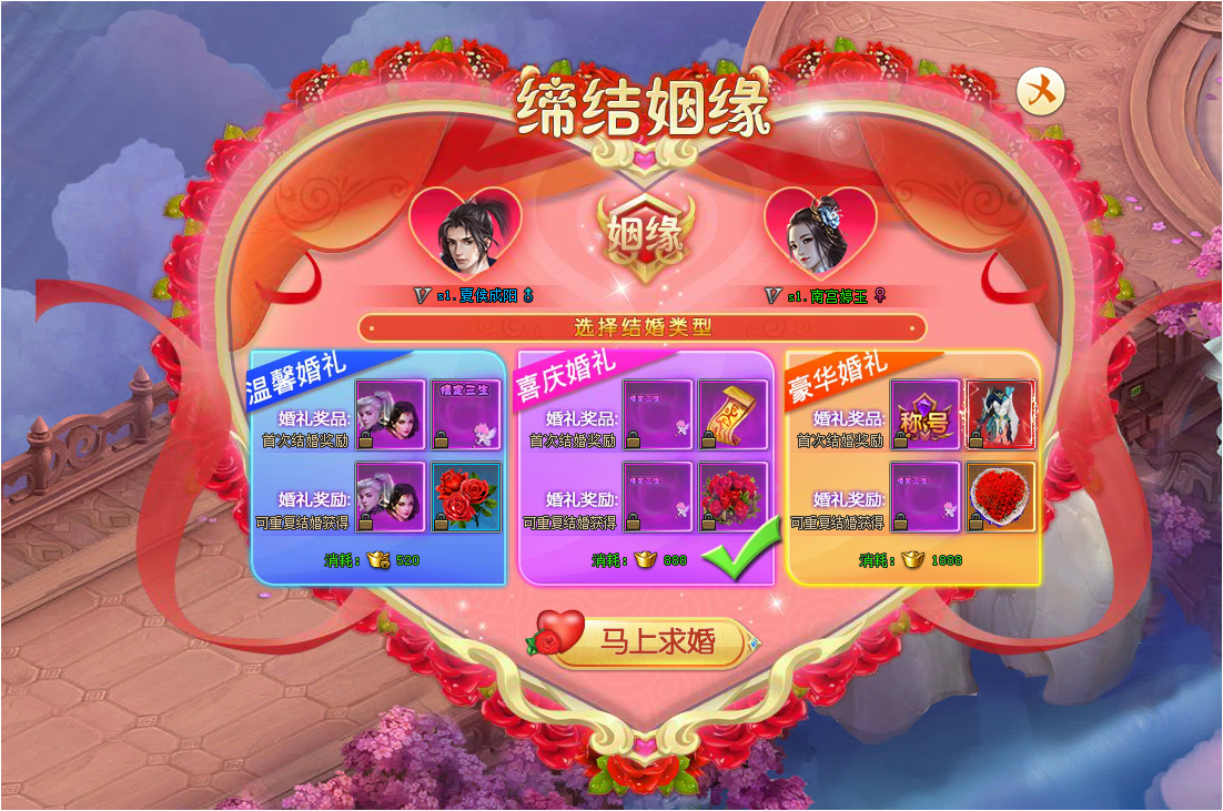 1.不同婚礼可获得不同奖励