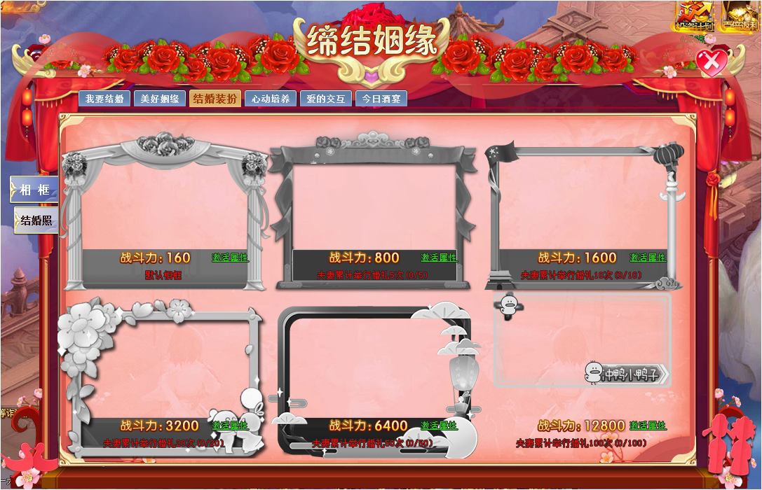 3.激活相框和结婚照可获得大量战力,还可以自己搭配喜欢的相框和结婚照