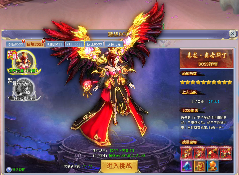 3.秘境BOSS只能挑战满足等级条件的BOSS,击败4个普通BOSS,刷出终极BOSS