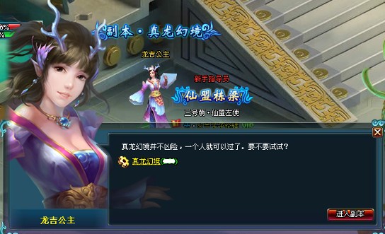 进入副本:在圣域找龙吉公主(569,523),与之对话即可进入副本。