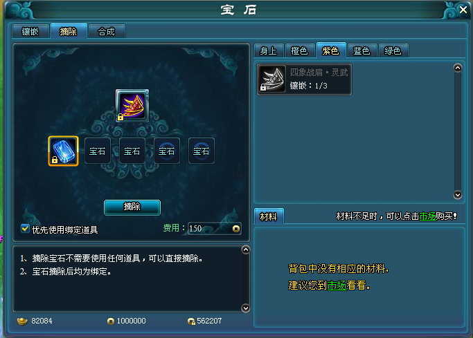 只有已镶嵌了宝石的装备才能进行摘除操作。