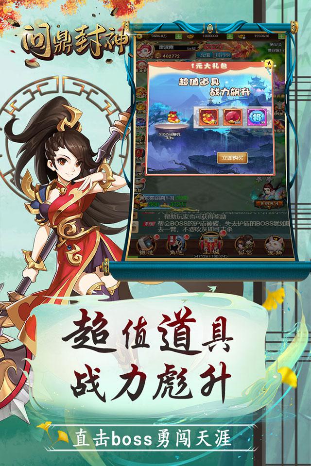 《问鼎封神》是一款Q版回合制游戏,精美2D Q版人物设计,搭配传统西游故事剧情,实力打造精品回合制经典!酷炫坐骑共同潇洒三界,独有万千道具自由回收,多样经典回合玩法无穷乐趣!