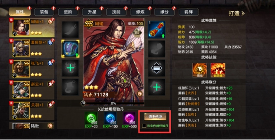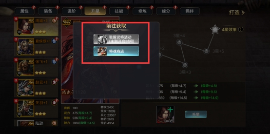 (1)点击升星按钮即可消耗对应武将碎片升星