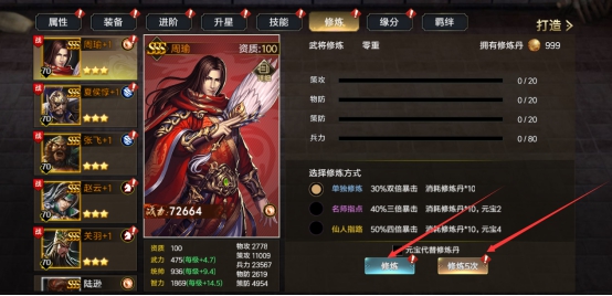 (1)点击修炼按钮可消耗修炼丹*10进行一次修炼