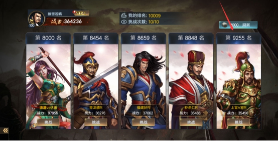 (1)点击刷新按钮,消耗铜币,刷新列表的敌人