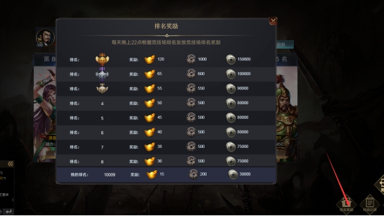 (5)竞技场挑战,可获得竞技币,首次排名上升可获得元宝
