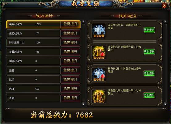 1.我要变强系统在【角色】界面右边的“变强”按钮,点击后即可进入“我要变强”界面。