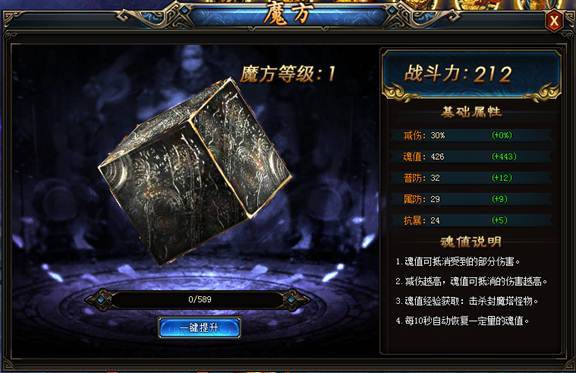1.魔方开启后玩家可获得“魂值”,“魂值”可用于抵消部分伤害。