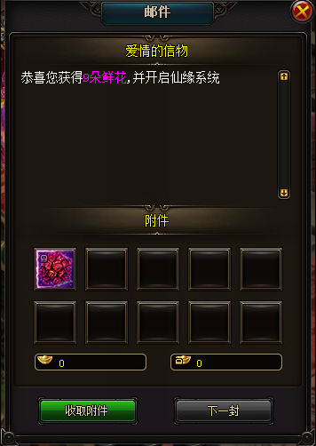 3.当选择“我愿意”后系统将“鲜花”道具并告知“仙缘系统”已开放