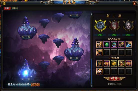 1. 封魔塔每层都有3个BOSS(位于封魔塔中间),点击BOSS头像可以直接飞到BOSS位置。