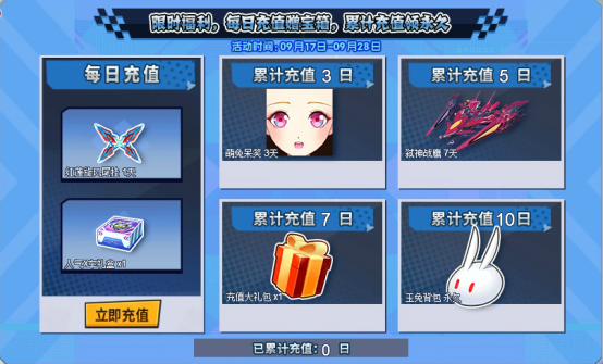 每日充值钻石即可获得抽奖礼盒及赛车装饰