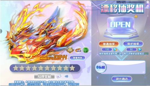 保护抽奖消耗充值钻,随着星级的增加消耗钻石也增加。