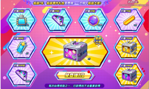 各位赛车手可以消耗一定数量绑定钻石参与抽奖