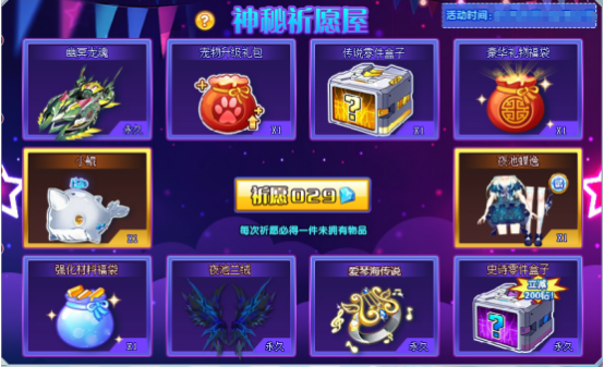 每次祈愿必得1件奖池内物品,祈愿获得的物品将移出奖池,不会再次获得