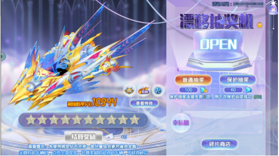 4. 保护抽奖消耗充值钻,随着星级的增加消耗钻石也增加。