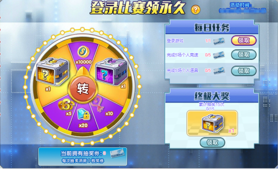 每日登录游戏或完成任务都可获得一定数量抽奖卡券