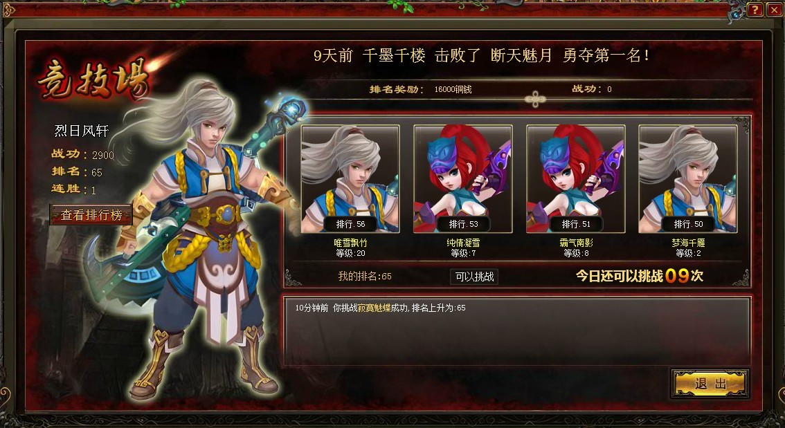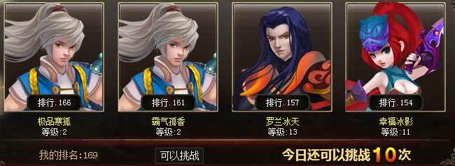 选择一个目标点击后即可自动进入战斗,玩家每天可以挑战10次,高级VIP用户挑战次数会有增加。每次挑战结束后玩家需要等待10分钟的冷却时间,玩家可以使用元宝消除冷却时间。