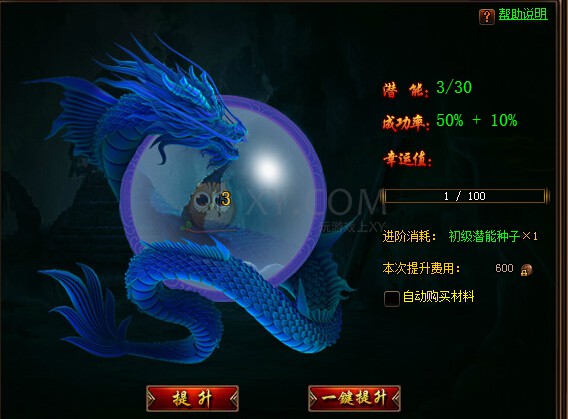 2.宠物潜能:提升宠物的潜能需要潜能种子。越到高级需要种子的等级也越高,潜能每升一级会按固定百分比增加灵宠的战斗属性,潜能提升后属性值会自动补 全。潜能提升失败不会掉级,会增加成功率,失败次数越多成功率越高。提升到一定级别有额外属性加成。潜能到达30,40,50,60会额外开启一个技能 栏。