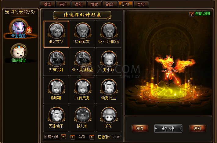 5.宠物幻神:和上面提升宠物属性的操作不同,幻神只是改变了宠物的外表,并没有使得宠物的属性得到提升,不过可以随意选择幻神的外形,让宠物看起来也是很拉风的。