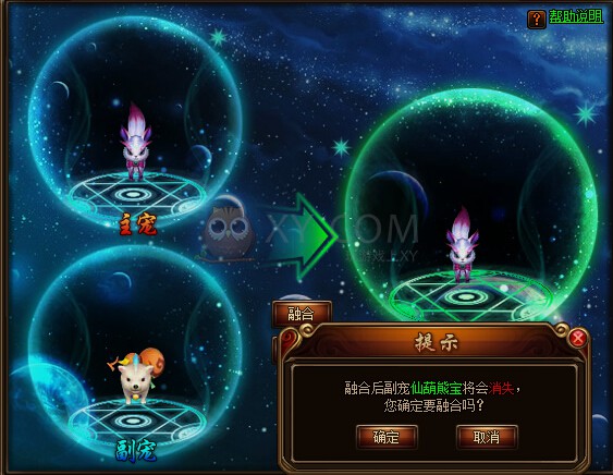 4.宠物融合:宠物融合是将一只宠物的技能转移到另外一只宠物上的功能。融合时宠物分为主宠和副宠。副宠在融合后会消失,技能加到主宠上。能提升主宠的属性,假如副宠的成长高于或者等于主宠的成长的话,融合之后主宠的成长+1!